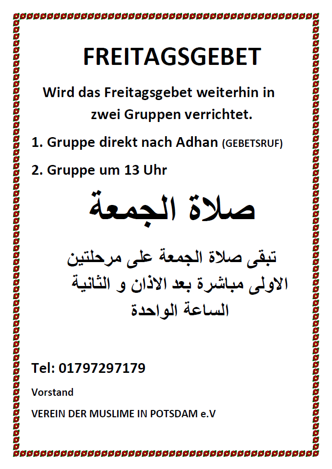 📍 Al Faruk Moschee Potsdam · 📞 0179 7297179
